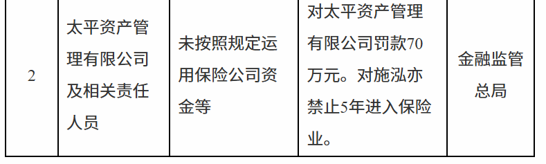 10月11日,国家金融监督管理总局行政处罚信息公示列表显示股票入门网股票,太平资产管理有限公司及相关责任人员因未按照规定运用保险公司资金等被罚款70万元。施某亦被禁止5年进入保险业。