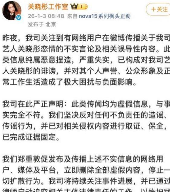 还有那个专门爆料的大V刘大锤,也不再藏着掖着了,直接就在社交平台上说,鹿晗和关晓彤他们各自的公司,早就开始慢慢划清界限了。他更是说得明明白白:“鹿晗关晓彤的感情已是过去式。”